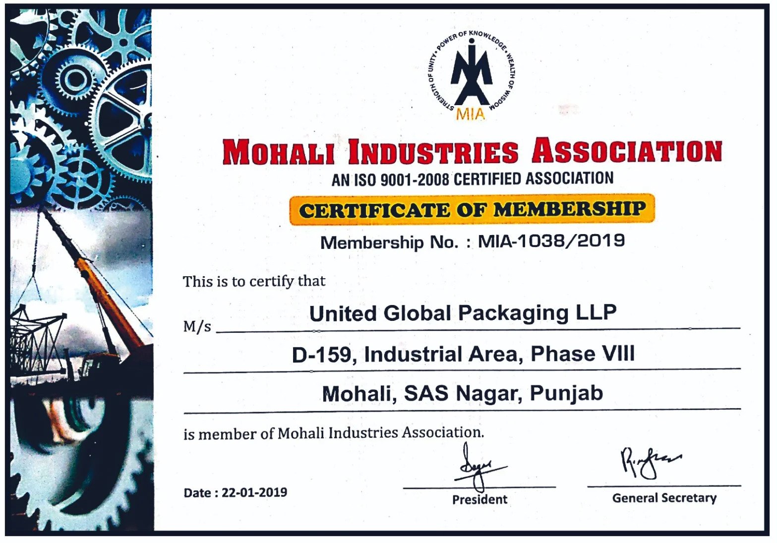Mohali Industries Association – an ISO Certified Association represents 600 large, medium and small scale industrial units located in Mohali and its surroundings. The Association was registered in September 1973 with the Registrar of Societies, Chandigarh. MIA provides a link between the industry and the Government for a better understanding and maintains a rapport by holding regular dialogues with departments connected with the industry.