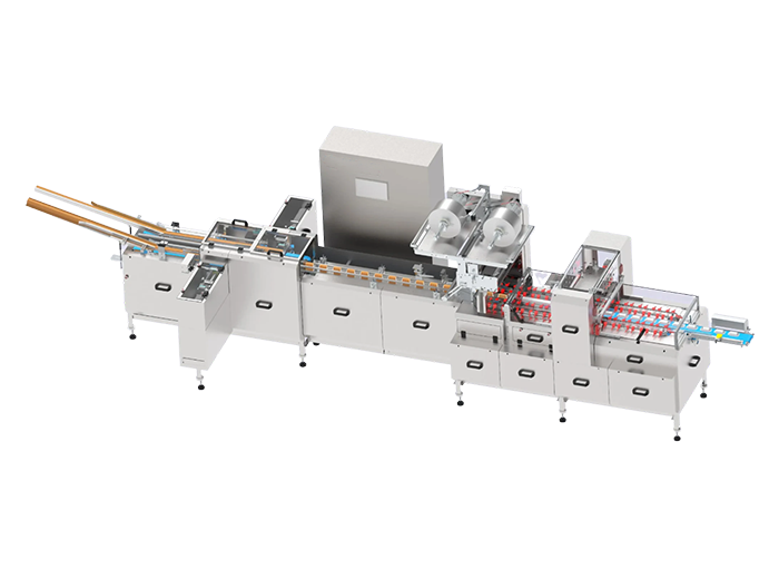 Our ‘flow wrap’ solution integrated with ‘two lane’ auto feeding system can pack biscuits standing on edge in slug format at speeds up to 140ppm and for 120mm slug at a speed of up to 180ppm for small size.